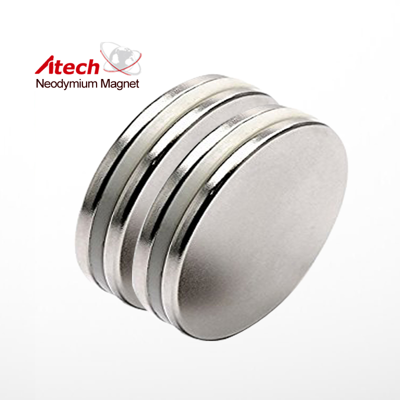 Nickel Coated N45 Neodymium Magnet Disc is made from high performance Neodymium Iron Boron. The NORTH pole is on one circular face and the SOUTH pole is on the opposite face. These Magnets are plated with 3 layers of protective coatings - Nickel + Copper + Nickel (Ni-Cu-Ni). The maximum operating temperature of Nickel Coated N45 Neodymium Magnet Disc is up to 80 degrees C.