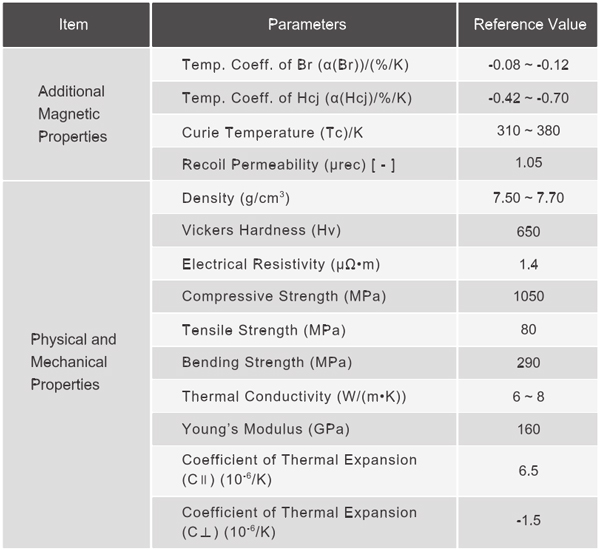 1. The above-mentioned data of magnetic parameters and physical properties are given at room temperature(20℃±2).